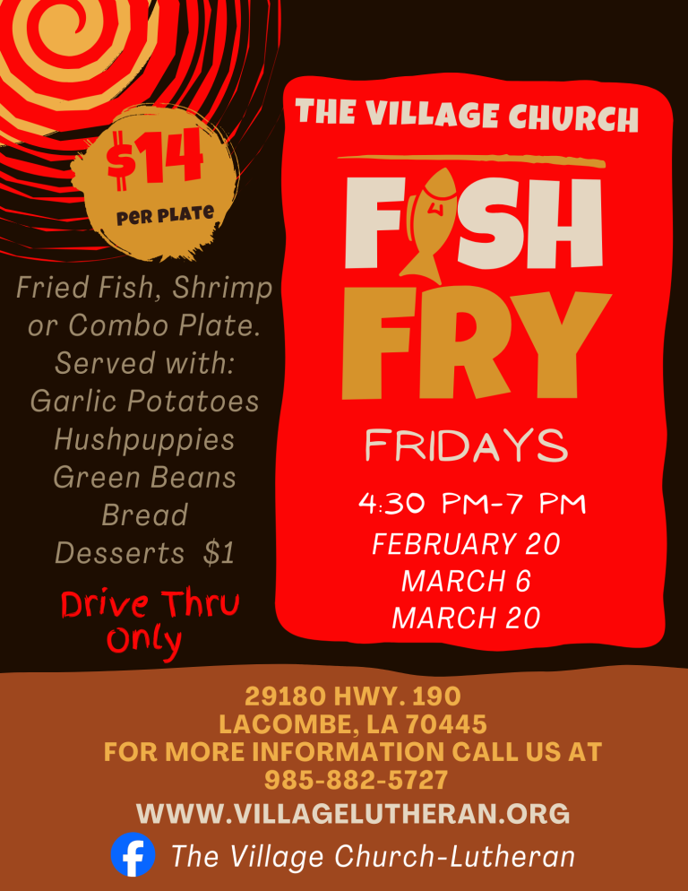 The Lenten FIsh Frys has been one of the Men’s Club’s biggest fundraisers over the years. This year we are serving golden fried fish, shrimp, & combo dinners, paired with green beans, cajun mashed potatoes, hush puppies, and fresh bread.
